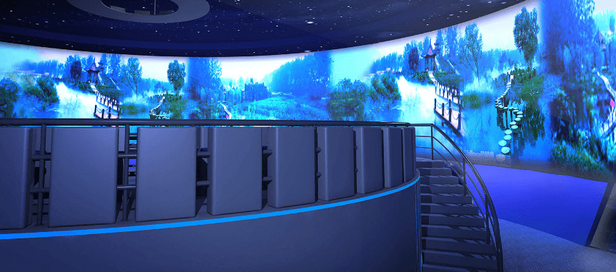 360度环幕:弧度为360度全封闭称作360度环幕。