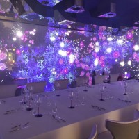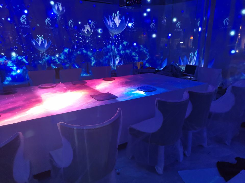 可多人同时操作并辨识动作手势。可以让多用户共同享受交互体验。长时间无人触摸时,系统自主播放设置好的信息内容,有人触摸时,则自动切换为互动式信息展示状态。操作应用选定图像,将图片进行放大,观看后缩小拉回。图片内容无穷无尽,科技感